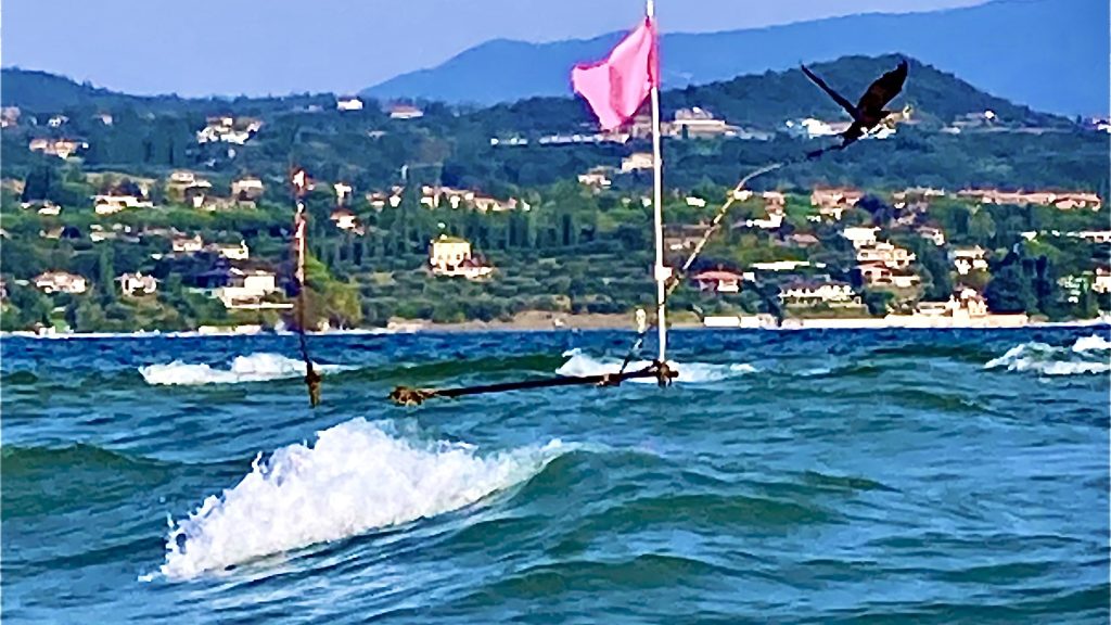 E lo immagino come un vecchio sapiente, con una lunga chioma – lunga come la sua scia – che collega con tenacia tutti gli abitati del Benaco.